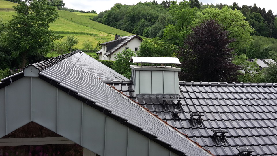 Blog Post Image: Tonziegeldach/ Kamin mit Stehfalz